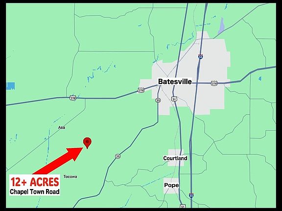 Located 7 miles from Batesville and 9 miles from I-55, this tract is on the corner of Whitten & Chapel Town Road. The timber has previously been harvested, but there are still some good-sized hickory, cedar, & others scattered around. The land is surveyed with corners marked & has a gravel entrance on the south end of the property. There's also a trail that goes in to the center of the tract. Covered in deer, there are tracks & rubs all over. There's also a good population of turkeys in the area so there's good potential here. With over 1,300 feet of paved frontage on Chapel Town Road, there's plenty of opportunity. Utilities are available, & this is an ideal location for a cabin or home, but the terrain is hilly & dirt work would be needed. However, with fewer big trees, the clearing & excavation would be much more manageable for preparing a building site. The tract is surrounded by larger land owners offering privacy & security along with added support for wildlife.