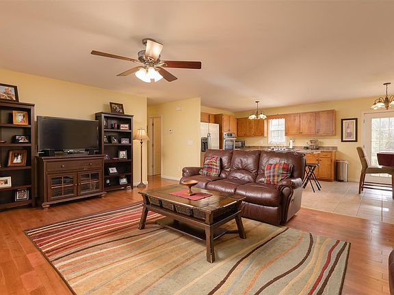 Gorgeous county setting. Beautiful 3 bedroom, 2.5 bath ranch home with a full basement that is partially finished with 2 extra rooms downstairs, perfect for an office or entertaining area. Rocking chair front porch and large deck on back overlooking private yard with apx 5.56 acres and a small spring-fed pond with fish. Large master bedroom and master bath with jacuzzi tub and separate walk-in shower. Freshly painted throughout. Spacious open floor plan with lots of natural light. 2 car garage basement with lots of storage space and utility sink- garage is heated and cooled. This home won't last long! Priced to sell and move in ready!
