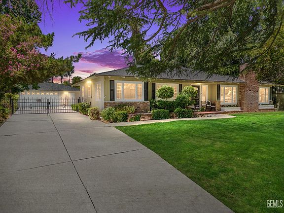 Situated by the sought-after Bakersfield Country Club Estate, this 1950s home, spanning 2,323 sqft, offers 3 large bedrooms, a bonus room, and 2 full bathrooms. Inside, enjoy a spacious living room, dining area, and a well-equipped kitchen with a gas cooktop, new dishwasher, double oven, and modern upgrades. The generous breakfast nook provides a cozy space for casual dining. Key features include hardwood floors, a newer composite shingle roof, Anlin windows, a state-of-the-art HVAC system with air filtration, and a tankless Rinnai water heater. Freshly painted interiors and a tastefully updated exterior add to the property's appeal. Outside, a detached 2-car garage provides additional storage space, and the expansive backyard offers ample room for play or relaxation, with potential for a pool addition. Combining traditional elegance with contemporary conveniences, this beautiful residence is a unique opportunity to own a piece of comfort and style in a prime location.