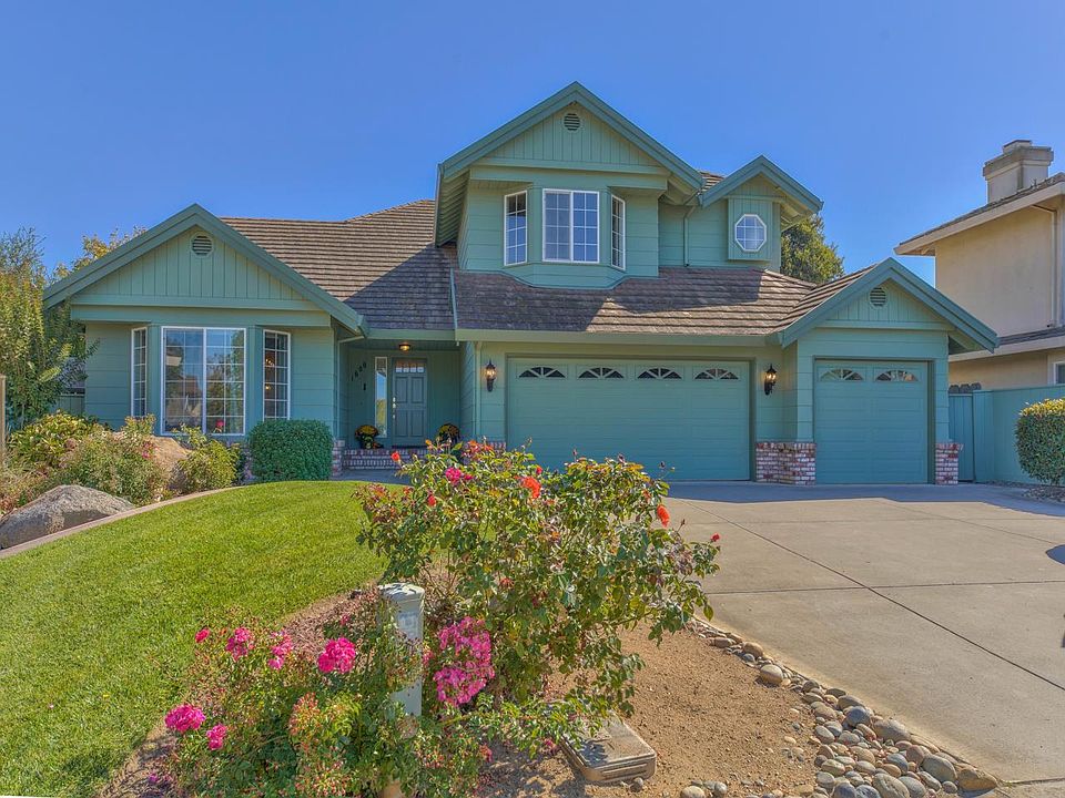 Spacious 5 bedroom, 3 bath Harrod Brothers home in well kept Canterbury Park subdivision. Fantastic floor plan with formal living and dining rooms. Large, light filled kitchen with room for breakfast table. Step down into family room with gas fireplace, ceiling fan and large patio door that takes you out to the private back patio and pergola. One bedroom and full bath downstairs. Master bedroom with large bathroom and 3 guest rooms and another full bathroom upstairs. 3 car garage with tons of storage and laundry. Backyard is very private as no backyard neighbor! All this on a large landscaped lot with mature shrubs and plants. Don't miss this special, one owner home, first time on the market.