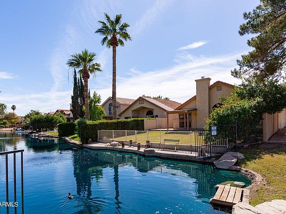 Welcome to your amazing lakefront home in the Springs community! This stunning 2-bedroom, 2-bath + den or office boasts vaulted ceilings, tile flooring, stainless appliances, and a cozy fireplace. The open floorplan leads to breathtaking lake views just steps from your patio. The 3rd bedroom doubles as an office/den with a closet. Enjoy serene evenings on the covered patio of this corner lot gem. Community perks include a pool, heated SPA, pickleball, tennis and basketball courts. Fish or kayak on the tranquil lakes, just steps from your door. Only 1 mile from downtown Chandler's vibrant dining, events, and shopping scene. Your oasis awaits!