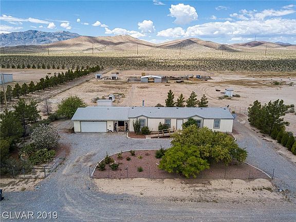 HOLY MOLY! CHECK OUT THIS PROPERTY! Just shy of 10ac. on the edge of Pahrump! Views for miles. Got toys? Bring 'em! Got horses? Bring em! 3 bed/2 bath home with 2 car garage, all appliances including freezer are included. Family room has propane fireplace plus formal living room. Desk area in the dining room. Bonus room off the back of the garage for crafts/storage/mancave/workshop. 4 stall mare motel and several outbuildings. Offer now!