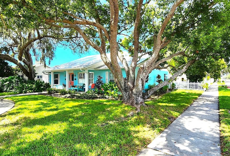 Paradise awaits in this charming Key West style home located within a 5-minute walk to Sunset Beach! Complete with a picket fence on a huge corner lot, this 3/2/2 home features a sprawling 1,731 square feet with upgrades galore! Literally move in and do NOTHING! Your turn-key dream home is perfectly positioned in the heart of Tarpon Springs; a Mecca of coastal living. Boating, beaches, dining, grocery, airports, golf, entertainment and nightlife are all at your fingertips within minutes from this absolute stunner. Whether you're searching for full-time living, a vacation home or a seasonal rental, the possibilities are endless! How? Well, for starters there is no HOA, no flood insurance required and all furnishings are negotiable! Bring the boat and the fur babies! It's the perfect split floor plan for family living with just a short walk to Tarpon Springs High school, Tarpon Springs Middle School and Sunset Hills Elementary. From the moment you enter the front door, you're greeted with ceramic wood plank flooring and a humongous bonus room (which doubles as a 4th bedroom) featuring a murphy bed with plenty of built-ins for ample storage, perfect for out-of-town beachgoers! Every square inch from the master suite to the eat-in kitchen, right down to the lanai has been updated with EXTREME pride of ownership. Step out back, pull up a bar stool and relish in the tropics as you BBQ under the covered patio area and enjoy the Gulf breezes in your massive vinyl fenced yard. Room for a pool? ABSOLUTELY! When I say move in and do nothing, that includes a lifetime metal roof (2013), an HVAC system less than 10 years old (2015), a new water heater (2022) and two brand new A/C mini splits installed just this year (one in the master and one in the rear-facing garage)! If that's not enough, Sunset Beach also offers a boat launch, park, pavilions, picnic tables, grills, volleyball court, restrooms and scenery that will make your cold-weather friends/family green with envy this winter... book your private showing before this one slips away!!!
