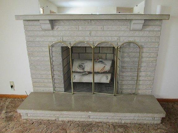 3BR/1BA brick ranch home features a large living room, kitchen with lots of cabinets, dining area, carport, and a full unfinished basement.