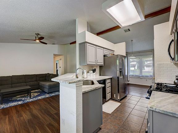 Located at 1600 Hatch RD, Cedar Park, TX 78613, this single-family residence in Cedar Park, Texas, presents an attractive property in great condition. The kitchen, designed with both aesthetics and functionality in mind, features a stylish backsplash and stone countertops, providing a delightful space to prepare meals; the kitchen peninsula offers an additional area for dining or socializing, making the kitchen a central hub. The primary bedroom features a tray ceiling, adding an architectural detail that enhances the sense of spaciousness and sophistication. Two additional bedrooms make this home very spacious. The bathroom offers its double vanity and walk-in shower, presenting a private retreat for relaxation and rejuvenation. Beyond the interiors, this property provides a fenced backyard, perfect for outdoor activities and creating a secure environment, while the patio offers a wonderful setting for dining or simply enjoying the pleasant weather. The inclusion of a laundry room adds a practical element, streamlining household tasks.