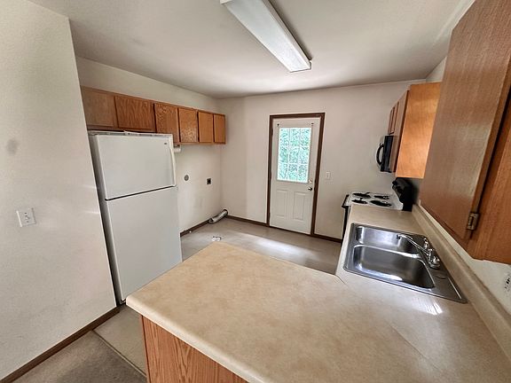 This property is situated at the bottom of a slight hill, at the end of a cul-de-sac. Very quiet neighborhood. 2 good sized bedrooms with a spacious loft overlooking the living room's vaulted ceiling. A functional fireplace sits in the corner of the living room, providing ambience and luxury. The well proportioned kitchen has washer and dryer hookups and the back porch looks out on woods in the back. This location is ideal for those that want some peace and quiet when the come home. Landlord covers landscaping and mowing, tenant pays for all other utilities. Pets may be available on a case by case basis for a fee and an additional monthly pet rent. Inquire with the landlord.