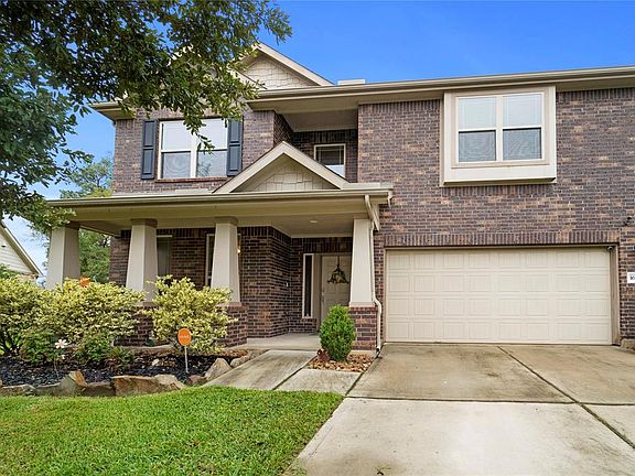 Back on the market! WELCOME HOME to this 4 bedroom beauty on an oversized cul-de-sac lot in Hidden Creek! Upon entering the home you will notice high ceilings and a formal dining room that is currently being used as a flex space and could be used as a second living room. The home flows nicely into an open concept kitchen and living room, kitchen includes granite counters and a breakfast bar, both spaces boast updated crown molding! Primary bedroom is located on the first floor with a large en-suite bathroom that includes separate shower and tub plus a large walk-in closet! Upstairs you will find a spacious game room and 3 secondary rooms with large closets! Property backs up to a wooded lot! Backyard has an extended privacy fence to make the most of your space! Home is equipped with sprinklers and a security system! Never flooded! Location gives easy access to 45 and Davis St with Lake Conroe and The Woodlands just a short drive away!