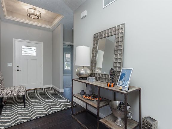 This is a great floor plan. A fast seller this plan has 11 foot ceiling, large snack bar, stainless steel appliances, granite counter tops and cabinets in abundance! Wood floors, fireplace. Tiled back splash in kitchen. Beautiful master with tiled shower. Walk-out basement. Can finish lower level with Bed, Rec room and bath. This has a private wooded lot. Overlooking a babbling creek. You will not find a prettier setting.