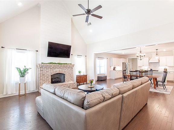 Beautiful single level home located on a corner lot in the Woodward Oaks phase 1. The front entry flows into large living room with hardwood floors, gas log fireplace with raised hearth, and vaulted ceiling. Lots of windows to let in natural light. The spacious kitchen provides an eat in island, gas stove, granite countertops, crisp white cabinets, and a large walk in pantry. The primary suite showcases a large walk in closet & dual vanity sink. Bedrooms 2 & 3 are spacious with ample closet space. A mudroom/office leads to a cozy covered porch with fireplace and blinds.This property has many upgrades. Newly installed whole house water filter and water softener. Drinking water sink filtration. New carpet November 2022, new fence gate, new bathroom sink in hall bath Spring 2023, new door bell 2022, new bathroom light fixtures, and new sod and landscaping spring 2023. (emerald zoysia grass) Dryer lint trap cleaned Spring 2023. Updated sprinklers to accommodate new lawn and landscaping.