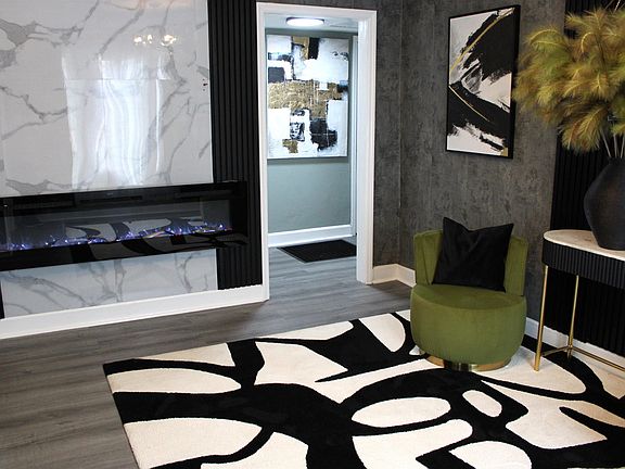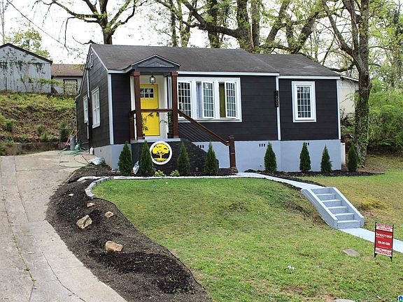 A classic yet incredibly elegant 2-bedroom 1-bath completely remodeled home in Anniston. You’ll fall in love with the sophisticated and fun designer space this home has to offer. New windows and flooring throughout. The living room features a gorgeous wide-in wall recessed colored flames heat electric fireplace. The textured print wallpaper and modern light fixtures add personality. The kitchen offers a new black sink and marble tile back splash. Dining room. Laundry room. Master bedroom. Full bathroom with massage shower head and glass opening. Covered front porch. Back patio. The freshly painted black exterior, yellow front door, customized cable railing, and flower beds take the curb appeal up a notch, adding contrast and intrigue. Call today for your private viewing.