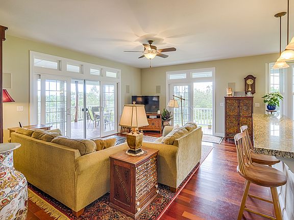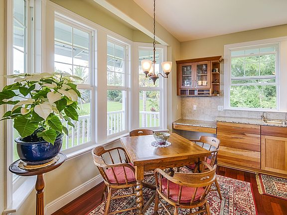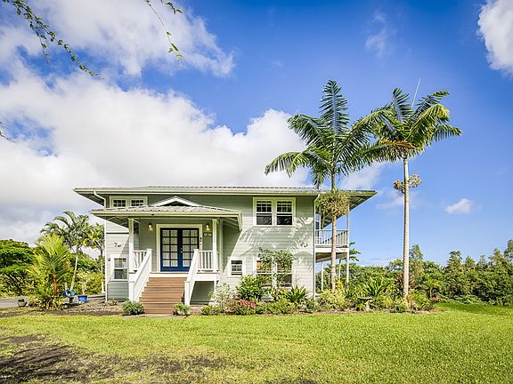 LIKE NEW PLANTATION STYLE HOME WITH OCEAN VIEWS ON BEAUTIFULLY LANDSCAPED ACREAGE located just minutes from downtown Hilo. Upstairs you will discover cherry floors and kitchen cabinets, granite and silestone counters, 9 ft. ceilings, 6 inch baseboards, double paned windows and a spacious covered lanai with Ohia posts that take in the beautiful grounds and ocean views. There is a master bedroom suite plus a separate office that could be used as a bedroom. Down stairs there is a spacious family room with wet bar plus a bedroom, separate bath and laundry room. The family room leads to its own covered patio. The floors are slate and tile. This lovely home was built with attention to detail. There is a red eucalyptus custom stairway leading from the lower level to the upper stairs, hardiplank siding, insulation in the roof, walls, and water pipes, surround sound built in speakers custom wood trim, upgraded front entry with composite deck, above and below cabinet lighting in the kitchen 2 outdoor sheds, a spacious garage and separate work shop. The property has many different varieties of fruit trees including Rambutan, mango, pear, orange, grapefruit, avocado, Longan, lychee, lime, lemon, bananas and coffee. There are also two clumps of giant construction grade bamboo. This is truly a one-of-a-kind property.