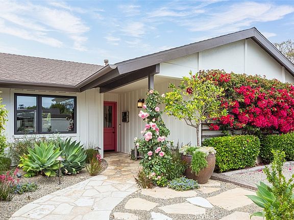Complemented by a prime corner homesite in Newport Beach’s preferred Westcliff West neighborhood, this impressively upgraded and remodeled residence is move-in ready. Colorful landscaping, stone pathways and a private, gated front patio guide residents and their guests to a classic Dutch entry door that welcomes refreshing ocean breezes. A soft-contemporary vibe is enjoyed throughout the single-level arrangement, which hosts three bedrooms and three- and one-half baths. Exactly 1,845 square feet, the floorplan features an open design with high ceilings, refinished easy-care concrete flooring, custom ceiling beams, an office with dual barn doors, a see-through fireplace, and unsurpassed attention to both practical and aesthetic details. Large windows and a sliding-glass door open the main living areas to the backyard, and a dining room flows easily to a custom remodeled kitchen with custom white cabinetry, quartz countertops, a breakfast bar, farmhouse sink and a full Tabarka tile backsplash. A suite of top-tier appliances boasts a three-piece Sub-Zero refrigerator that includes a full-size wine cooler, and a Thermador Professional range with six gas burners, induction cooktop, steam oven and a gas oven. In-ceiling speakers, recessed LED lighting, contemporary lighting fixtures, a remodeled hall and guest bath, and an attached two-car garage with car-charger and epoxy floor are featured. Bedrooms are private and sophisticated, including a primary suite that showcases an added custom bath with a vaulted ceiling, freestanding tub, oversized shower, separate vanities, a sit-down vanity, backyard access and a dedicated tankless water heater. Peaceful, calming and beautiful, the backyard is a true sanctuary that promotes entertaining and relaxation with a covered and heated arbor-style dining area, custom fountain, raised planter beds, citrus trees and a potting table. Westcliff West is home to the popular Westcliff Plaza and close to Dover Shores, Dover Village, Back Bay trails, beaches, piers, and excellent schools including Mariners Elementary School and Newport Harbor High School.