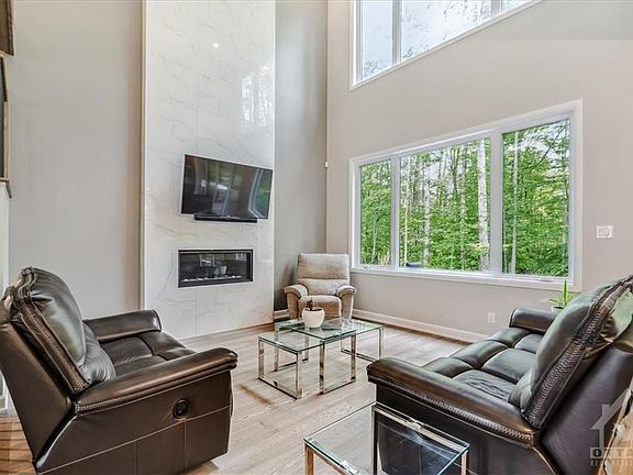 Discover luxury with this contemporary 4-bed, 4-bath new build set on a tranquil 1.9 acres of land. Nestled in a tree-lined pocket, this gem showcases exceptional finishes throughout & leaves nothing to be desired. Step inside the inviting foyer revealing a warm, modern style that sets the tone for the welcoming feel of the residence. Exceptionally large windows in every room allow for natural light to flood each space & provide views of the serene nature that wrap the property. At the heart of the home is an impressive 2-story living room equipped with a stunning marble floor-to-ceiling fireplace surround. Open to this space is the chef's kitchen which features modern appliances, ample cabinets, a center island, a butler's pantry & sliding doors that lead to the rear patio. The 2nd level hosts 3 bedrooms, including the spacious primary suite with a notably large walk-in closet & spa-like ensuite of your dreams. Enjoy this enchanting location just 20-minutes from Ottawa. 2022-09-06