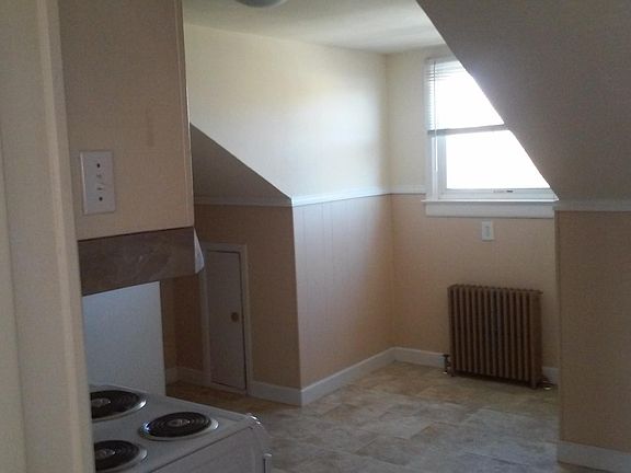 Cozy 2nd floor 2-bedroom apartment in a single home. Clean with neutral colors. No laundry facilities but across the street in shopping center. Includes heat and water. Pay own electric. Close to park, highways and short walk to shopping. Landlord lives on first floor so no pets or kids. Background and credit checks required prior to showings by appointment only. Renter responsible for electric. First and Last month's rent plus security deposit due at signing. No smoking allowed.