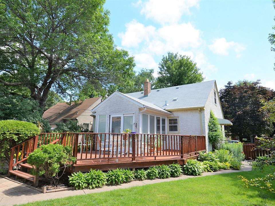 New kitchen with center island. New stainless steel appliances. Extra deep sink and gas range. Fenced yard with deck and patio. Hardwood floors on main level and upstairs. Basement family room bar and fireplace. Central A/C. Great floorplan. Porch off kitchen.