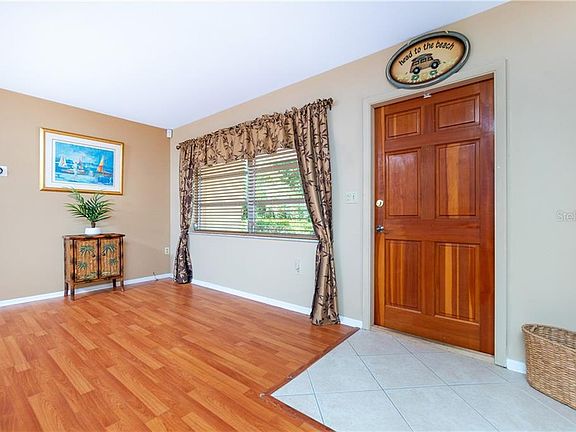 Perfectly situated on a private lot measuring at over an acre, this home is the epitome of life in paradise! The large circular driveway creates a path to your 2-car garage, past your tropical landscaping, and offers ample parking when you have guests. As you walk past the front door, views of your private backyard oasis take center stage through a virtual wall of hurricane impact windows in your attractively tiled Florida Room, just past the Dining Room and Great Room that both feature wood laminate flooring for easy maintenance. The attractive wall colors throughout this home create a beautiful living space, and the chair railing, and upgraded ceiling fans and lighting fixtures provide a distinctive flair. The gourmet kitchen offers ample granite counters, beautiful tile on the diagonal flooring and backsplash, gleaming stainless appliances, a double oven, a large pantry, and crisp white wainscoting cabinets, creating the sunny feel of a beach cottage, and it opens to the Dining Room, Great Room, and Florida Room, excellent for entertaining! The well-designed split floor plan gives you privacy from your guests and creates the feel of a much larger home. The numerous windows create a sunny atmosphere and provide an energizing flow of natural light, and both bathrooms have been nicely upgraded. Have your morning coffee in the patio area and plan your day. Your large lot and sizable parking area give you plenty of room to park your RV and your boat. With the boat ramp less than mile away, you can splash your vessel and be in Lemon Bay, the Gulf of Mexico, and numerous beaches in minutes. Dock at a waterfront restaurant, have lunch, and enjoy the live entertainment. By car, the beach is less than 3 miles away where you can enjoy the white sands and clear waters of The Gulf of Mexico and view spectacular sunsets in the evenings. Grill in your large, private backyard in the evening and hang out with your friends. Check with the county and put in a sparkling swimming pool for even more options, day and night! The 2015 Roof and hurricane impact windows in the Florida Room are icing on the cake. This is the perfect vacation, rental, or full-time home. Call today for your forever in paradise!