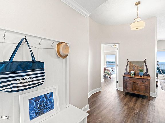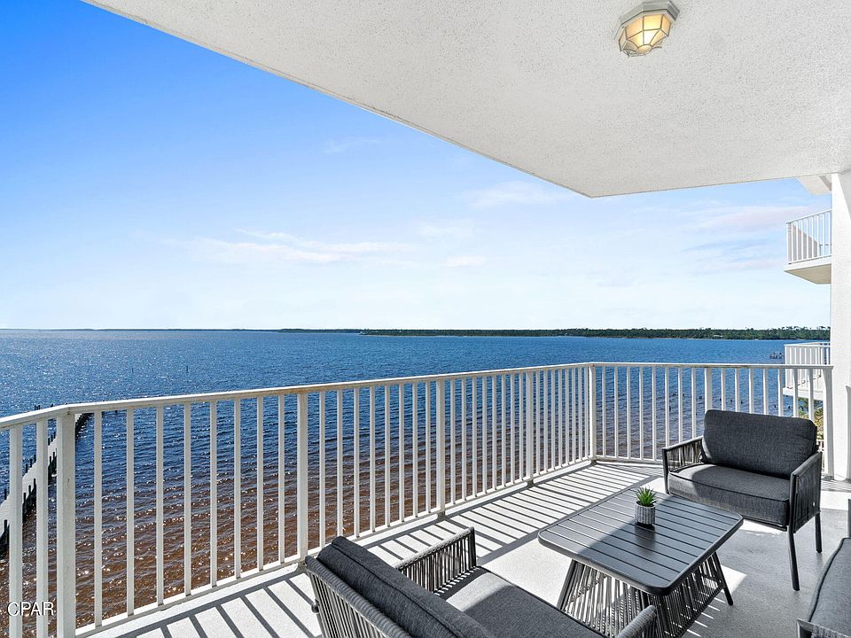 With 1525 sq. ft. this condo feels expansive and bright. The large primary bedroom has a stunning bay view. The large walk in closet features wood shelving. There is a roomy walk in shower, whirlpool tub, and 2 separate vanities. The laundry room offers lots of storage and is large enough for a desk or workbench. The sizeable second bedroom is large enough to be used as another primary with access to the second bathroom. The living/dining/kitchen is light and bright with stunning views of the bay. Sit and relax on the balcony to enjoy the captivating sunsets. The condo complex offers high speed internet, water, and cable t.v. Amenities include heated pool, hot tub, fitness room, community room, private beach, and boardwalk. There's one large, covered parking space reserved for the unit as well as outdoor parking for guests.