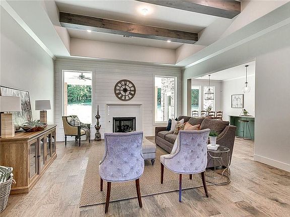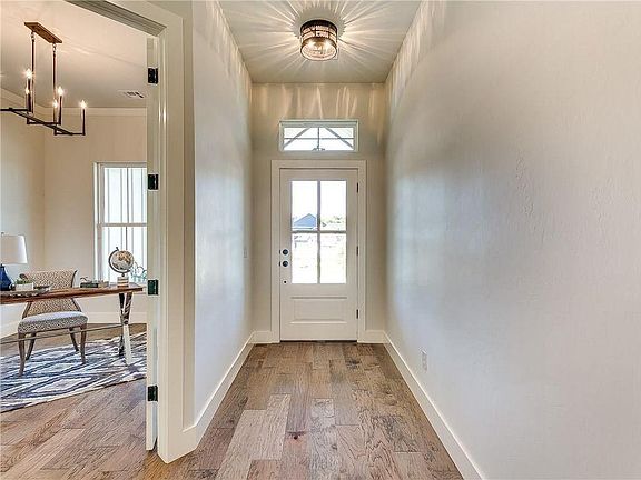 Beautiful home in Edmond's premier modern farmhouse community, Hidden Creek. This home features 3 bedrooms and 2.5 baths downstairs with a large bonus room and another 1/2 bath upstairs. 3 Car Garage. Great open layout with a large covered patio and outdoor fireplace. You'll love the ship lap details, mud bench and custom built-ins throughout. Wood floors in main living spaces, tankless hot water heater, and designer finishes are just some of the features included in this home. Custom horizontal wood fence in backyard. Backs up to a wooded acreage. Neighborhood Playground. Hidden Creek is conveniently located near I-35 and minutes from Starbucks and the new Showbiz Cinema. No smoking allowed. Two small pets allowed. $400 pet deposit and $30 per month pet rental. Home not furnished (photos were taken with staging furniture). Fenced yard. Tenant responsible for utilities.
