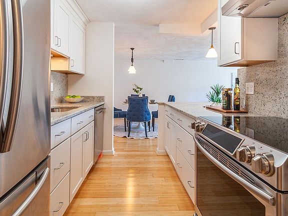 Iconic 1600 Mass Ave is within 2 blocks of Harvard Square and directly across from Harvard Law School. This unit is one of the nicest I have seen in the building! The highly renovated kitchen with SS appliances has been opened up to the living/dinging room. There are Bamboo floors throughout and a fireplace in the living room. A sliding glass door off the living room leads to a private South facing Martini Balcony.. The Primary bedroom has a beautiful marble renovated bath and large walk in closet. The guest/second bedroom can easily hold a queen bed and desk or dresser. The common hall full bath has also been renovated and W/D is in unit. One assigned garage parking space is included. Don't miss this unit if you are looking for one level living in Harvard Sq! Sorry no students. Water/Sewer included. Tenant pays all other utilities. Real Estate Fee equal to one months Rent. No Pets and No Smoking. Fireplace is decorative only. 24 hour notice needed.