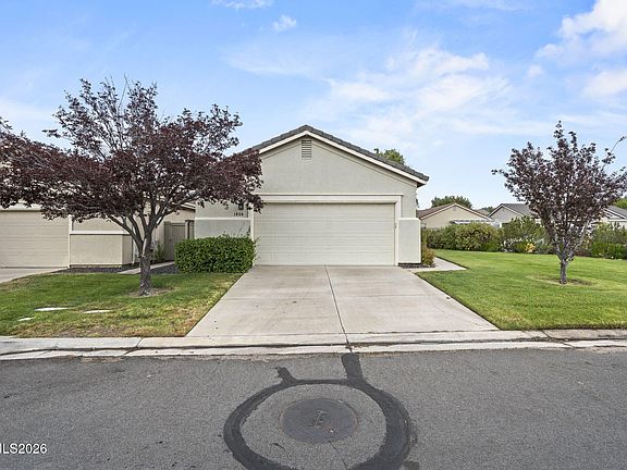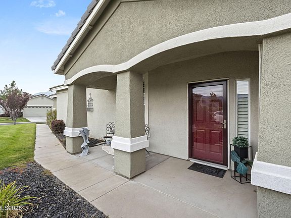 Welcome home to this beautifully maintained residence in the exclusive gated community of Wyndgate in South Reno. From the moment you step inside, you'll appreciate the thoughtful layout, beginning with a spacious formal dining room ideal for hosting holidays, celebrations, and intimate dinners alike. At the heart of the home is the stunning kitchen, complete with granite slab countertops, stainless steel appliances, pendant lighting, and a convenient breakfast bar that opens seamlessly to the living space. The family room is warm and welcoming, featuring a tile-surround gas log fireplace with a generous hearth, ceiling fan, and plenty of space to relax or gather. The laundry room offers excellent functionality with ample storage and upper cabinetry. Outside, enjoy the ease of HOA-maintained front landscaping, while the private, low-maintenance backyard is designed for entertaining with a spacious patio and tranquil water feature. The garage is a true standout, offering a dedicated workshop area perfect for projects, hobbies, or extra storage. Recent replacements include the furnace, air conditioner, and water heater. Located in a sought after South Reno neighborhood, this home offers the perfect blend of privacy, convenience, and low-maintenance living.