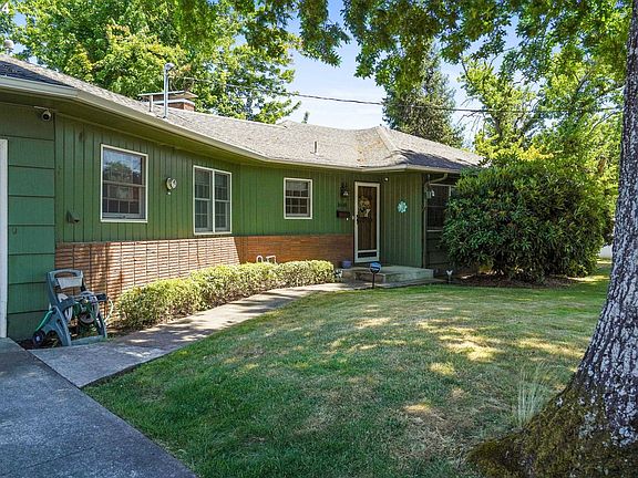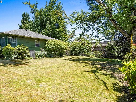 Classic Mid-Century Modern. Oak hard wood floor, tile in kitchen and primary bath, newer carpet in living room. Spacious kitchen with granite counters. Integrated dining area with fireplace. Large windows. Private deck & patio, landscaped yard, huge side yard. Room for RV pad or shop, large finished basement rooms...your home-work space, spare guest room or family room.