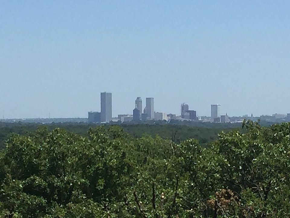 Amazing contemporary w/downtown Tulsa skyline view from a private hillside just 10 minutes from downtown. Loft design w/balcony. Remodeled bathroom & kitchen w/new oven. Separate building for office or guests has full bathroom. Large deck w/skyline view.