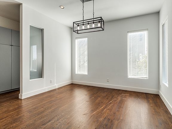 Welcome to this exceptional corner lot three-story condo. Where modern design meets urban convenience. This home is filled with abundant natural light, and the double sheetrocked shared walls create a private quiet oasis. Level 1: Welcoming bedroom with a full bath Level 2: Open living, dining and kitchen area Guest-friendly half bath Balcony with grill hookups Level 3: Expansive primary bedroom with en-suite bath, with washer-dryer setup and walk-in closet. Balcony with skyline views Additional Features: Downtown Dallas skyline views Epoxy garage flooring, turfed front yard, Ring cameras, smart thermostat, surround sound, custom rolling shades. NEW quartz countertops, wood flooring, water heater, carpet, and fresh paint. Washer and dryer included. Lease terms negotiable, long-term preferred.