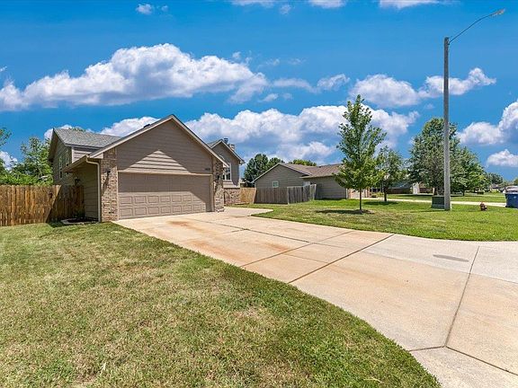 Welcome to your dream home in the Countrywalk Estates addition of Mulvane, KS! This stunning property boasts 5 bedrooms, 3 bathrooms, and is situated on a large lot, providing plenty of space and privacy. As an added bonus, it's located right next to a stocked neighborhood fishing lake, offering picturesque views and opportunities for outdoor enjoyment. Upon entering, you'll be greeted by the immaculate condition of this home. The spacious vaulted living room serves as the heart of the home, anchored by a charming woodburning fireplace, perfect for cozy gatherings during chilly evenings. The living room seamlessly flows into the kitchen and dining area, which features newer luxury vinyl flooring, giving the space a modern and elegant touch. The island kitchen is a true delight, complete with an eating bar for quick meals on the go and a generous dining area for sit-down gatherings with family and friends. The kitchen comes fully applianced, including a 5-burner gas stove and an over-the-range microwave, making meal preparation a breeze. Step through the patio door off the dining area, and you'll find yourself on a lovely wood deck overlooking the privacy-fenced backyard. This vantage point offers breathtaking views of the nearby lake, creating a serene and tranquil setting to relax and unwind. The master bedroom is a true retreat, not only offering lake views but also featuring a walk-in closet and an en suite bathroom with a convenient dual sink vanity. Venturing to the lower level of the home, you'll discover an incredible family room with view-out windows, flooding the space with natural light and providing an inviting ambiance. Additionally, there are two more spacious bedrooms on this level, both serviced by a third bathroom, ensuring comfort and convenience for all members of the household. The location of this property is a standout feature, with a short commute to nearby aircraft plants, the Kansas Star Casino, and McConnell Air Force Base. This makes it an ideal choice for those seeking a convenient and accessible location while enjoying the peaceful surroundings of the smaller city of Mulvane. Don't miss this opportunity to own a well-maintained, spacious, and stylish home with a range of amenities. Make this dream your next home! Contact us to schedule a showing and see for yourself all that this remarkable home has to offer.