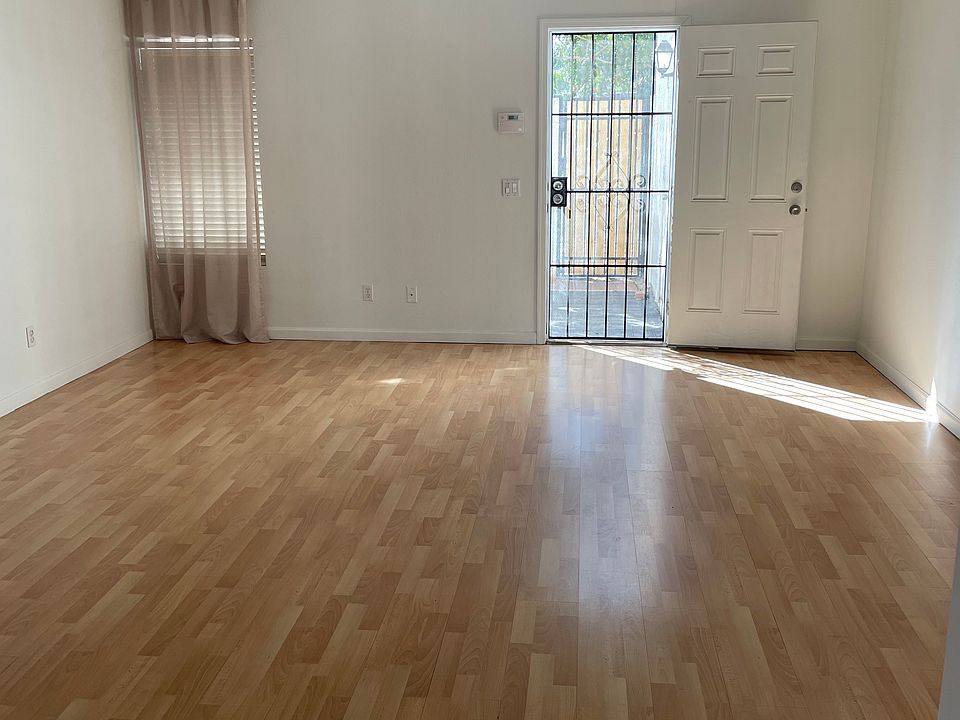 2 bedroom unit with tile in entry and wood laminate on the ground floor. Kitchen has pantry and desk/work area. Raised counter/breakfast bar looks out into family room. 1/2 bath under stairwell. Large 2nd floor bedroom has vaulted ceilings and 2 walk in closets. Laundry room in hallway near master. Full bath with shower/tub combo. Large master bedroom with mirrored closet doors. Private outside patio with storage and access to parking behind unit and community pool. No smoking , pets approved on case by case basis with non refundable deposit minimum 12 month lease