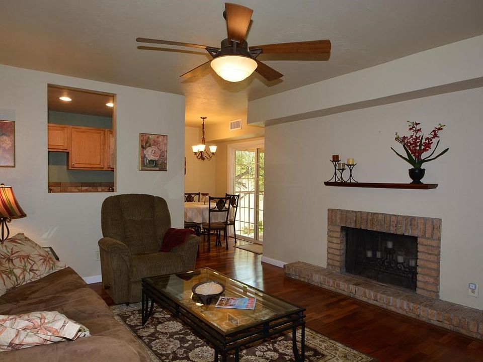 Updated move in ready condo. Newer tile, carpet and wood laminate flooring, newer windows, remodeled kitchen and 2 full bathrooms. Wood burning brick fireplace in family room leading out to a spacious balcony. Large master bedroom with 2 closets also sits off the balcony. HOA includes water, sewer, trash, exterior & roof maintenance, common areas, laundry facilities, pools and clubhouse. You will be at home from the moment you open the front door.