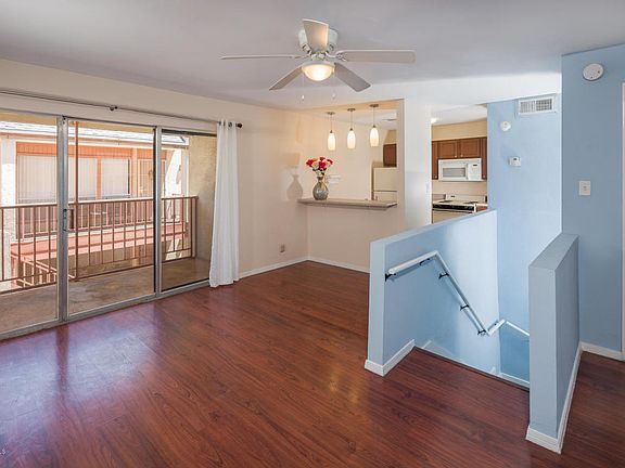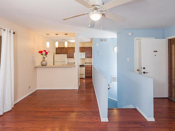 Beautiful 1 bed 1.5 bath Town-home remodeled. Move-in ready split level, 806 SqFt almost the size of a 2 bedroom floor plan. Large master bedroom with a huge walk-in closet and built in bookcase. Updated Master Bath. On the main level It has beautiful wood floors, Kitchen has modern counter tops, plenty of cabinets and breakfast bar that opens to a light and bright living room. upgraded fans and light fixtures.Laundry inside. Peaceful, quiet and well maintained community. The HOA has two community pools. Covered parking in front of your door with level entry.