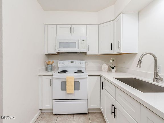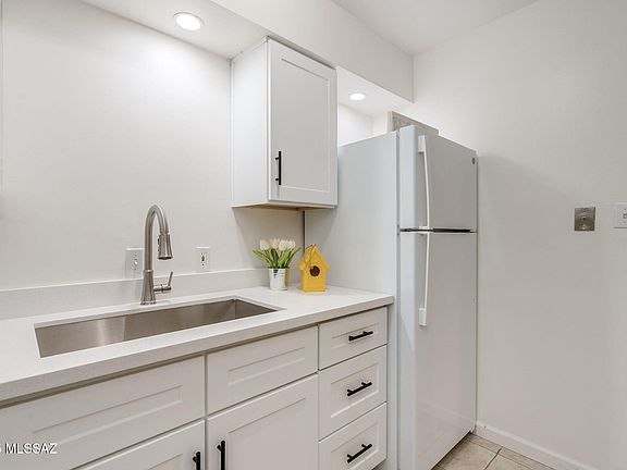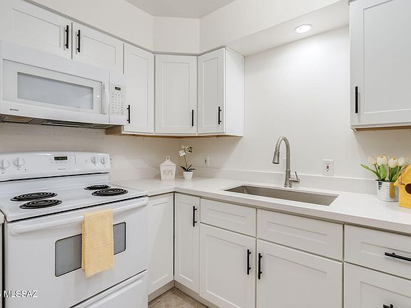 Welcome to this beautifully updated studio condo located in the Las Colinas Condos in Tucson, AZ. This move-in-ready unit is perfect for Buyers seeking affordable, low-maintenance living with a modern flair. Step inside to find an open-concept living space with brand-new luxury plank vinyl flooring & fresh paint throughout. The kitchen has been remodeled with new cabinets, quartz countertops, stainless steel sink & faucet. The updated bathroom features a new vanity, upgraded fixtures & tub/shower combination. Additional highlight is the fully enclosed patio. Las Colinas offers a well-maintained community with amenities such as 2 pools, laundry facilities & covered parking. Conveniently located near shopping, dining, public transit, and just 15 minutes from the U of A & downtown Tucson!