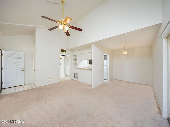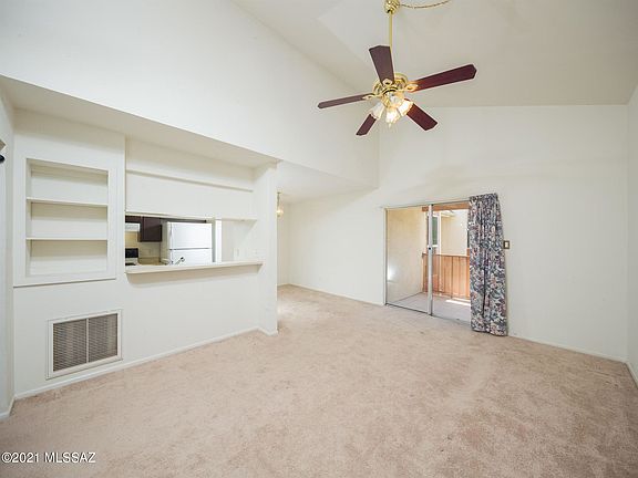 Shady and Private one bed one bath unit. 2nd floor for privacy and lovely view of pool and laundry facilities. Unique vaulted ceilings and lots of natural light. Needs some updating but in good shape. Bathroom shower has knobs removed and dial installed. Nice tile surround in bathroom Breakfast bar and dining area off kitchen. Refrigerator stays. Great location in unit and in Tucson. close to everything. Complex provides two pools and three laundry rooms. Really nice place.
