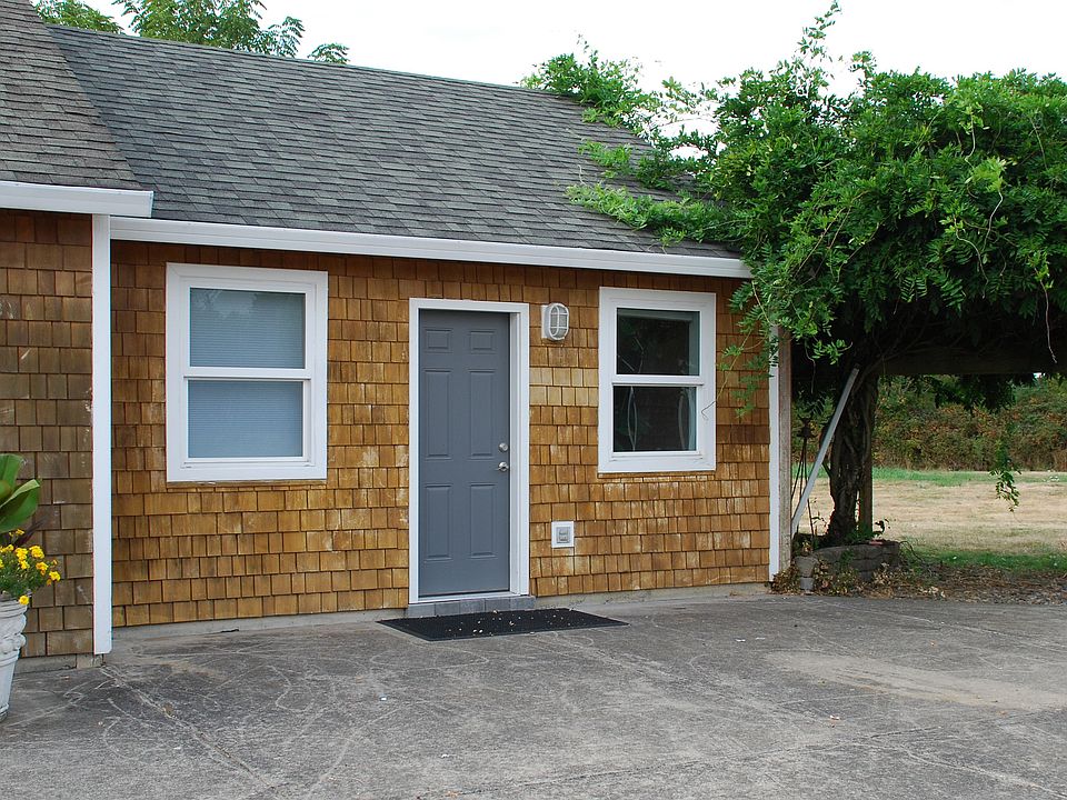 Quiet and private, charming country apartment located 1 mile north of I-5 Exit 11. Perfect location within minutes to all amenities. Living space includes ground level 800+ sq.ft.area separated from main house by garage and workshop. Apartment has own patio with direct access to lawns and gardens. 1 bedroom, gas cook range, granite countertops, new carpet, washer & dryer, cat or small dog O.K. with monthly fee. Available R.V. pad. Apartment can be rented furnished for $1,200 or unfurnished for $1,100. Utilities included!Utilities Included!