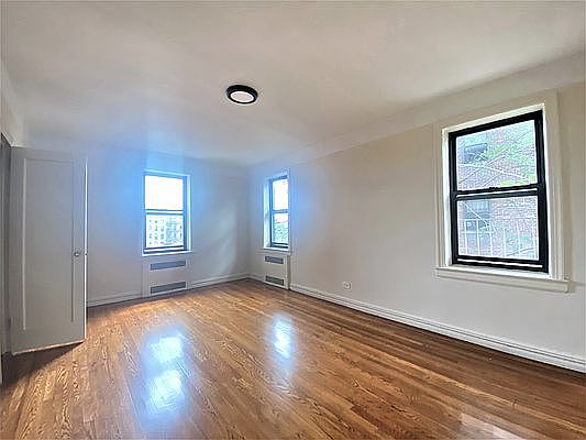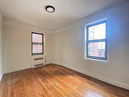 Large and sunny two bedroom apartment with eat-in kitchen and dining room. Approximate dimensions: LR: 18'7" x 13'11", BR1: 18'7" x 11'10", BR2: 13'11" x 9'6", DR: 11'2" x 9', Kt: 9'10" x 6'6" Elevator and laundry room. Pets case by case! Video available upon request!
