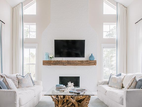 Discover unparalleled luxury in this custom-built 2018 masterpiece located in the coveted Selva Marina community of Atlantic Beach. Nestled on an elevated lot with panoramic views of Johansen Park, this stunning home offers a blend of modern elegance and timeless charm. Experience grandeur in the great room with its 20-foot ceilings, elegant wood beams, washed brick fireplace, and pristine white oak flooring throughout. The gourmet kitchen is outfitted with high-end appliances, perfect for the discerning chef. The gourmet kitchen is a dream, featuring ample storage, a separate full-size Thermador refrigerator and freezer, beverage cooler, and a butler pantry. The first floor primary bedroom features a California walk-in closet, double vanities and a wet room with double shower heads and soaking tub behind a wall of glass. A first floor ensuite guest bedroom adds additional convenience for guests or in-laws. The open floor plan includes an oversized laundry room and a practical drop zone when entering through the garage. The second floor boasts two additional ensuite bedrooms, a built-in office area, and a separate media room with a full bath, easily usable as an oversized fifth bedroom or secondary living area. This floor also offers two large conditioned storage closets and a secondary laundry room. Outside you will find an expansive "L" shaped covered porch with a lounge swing providing the perfect vantage point to enjoy the lush park views. There is an outdoor summer kitchen, plenty of seating and the spacious lot offers ample room for a pool. For added convenience, there is an outdoor bath and outdoor shower, perfect for rinsing off after a day at the beach, all within this private corner lot. Additional features include a full home generator, tankless water heaters, and extra-deep two-car garage which includes additional space for a golf cart. This exceptional home offers a seamless blend of luxury, comfort, and practicality in one of Atlantic Beach's most desirable neighborhoods. Don't miss your chance to call this home your own.