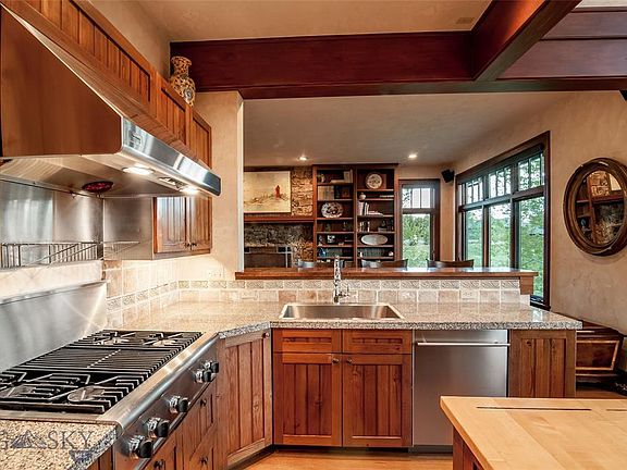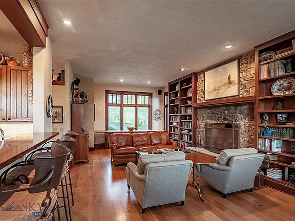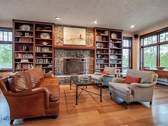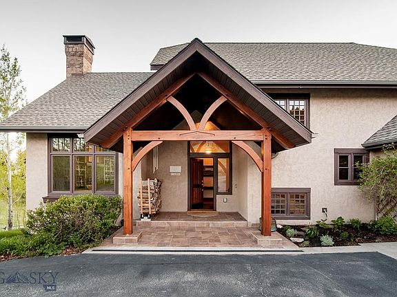 Less than 15 min. drive from downtown Bozeman, this luxury home sits on 10+ acres in the foothills of the Bridger Mtns. The yard is fully landscaped w/ a terraced lawn & perennial gardens enclosed by a jack fence & custom metal work details. The exposed timbers, high ceilings, abundant windows & open floor plan create a private sanctuary ideal for entertaining. Gather for wildlife & star gazing on the SW facing decks, or around crackling fires in the living room's stone fireplace. The heart of the home is the chef's kitchen w/ high-end stainless appliances, butcher block island, plus a butler's pantry with 2nd dishwasher & additional storage. Choose the main floor master for one level living, or the utilize the entire second floor as a master suite complete with loft sitting room, office area and an extra room. Kept cozy w/ radiant heat, the downstairs features a family room, wet bar, wine cellar, large bath and two bedrooms. Don't miss the neighborhood's 55+ acres of open space.