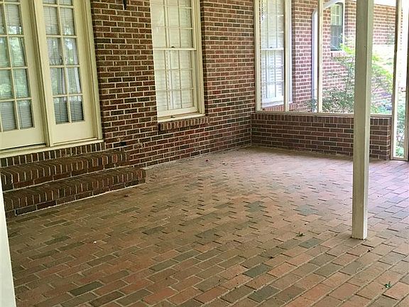 Spacious home with large rooms. Double closets in each bedroom. Den with beams in ceiling and wood burning fireplace. Wet bar. Separate study. Large laundry room. Covered porch with brick floors. Neutral colors throughout. Foyer entrance. Living and dining rooms. Walk-in basement for storage. Circular driveway in front. Double door front entrance. Fenced yard (partial). Well-designed kitchen.