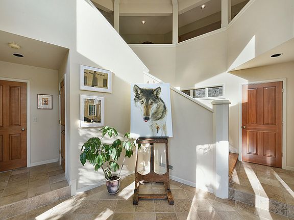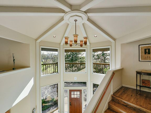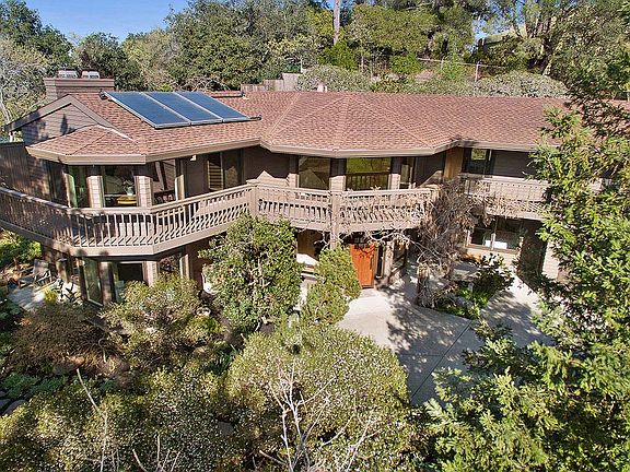 ~ Located on a private drive, tucked off the street, sits this rare Lafayette compound containing a beautifully updated main residence in addition to a detached 1215 sq. ft. studio ideal for a fully functioning office or, transform this space into a stand-alone guest house to be used as desired! ~ The low maintenance parcel with mature landscape provides wonderful valley views and privacy while the nearby path to Springhill Elementary, Acalanes High School (check availability) and local commute routes reflects this convenient, Reliez Valley location. Other nearby amenities include Briones Regional Park, Springbrook Pool and the Lafayette Tennis Club. ~ The 4 bedroom/3 bathroom main home features contemporary finishes, treehouse-like views, updated kitchen and bathrooms, hardwood floors, and perfectly placed windows for beautiful streams of natural light Formal and informal staircases lead to the upper level of the home complete with separate living, dining and family rooms, a remodeled eat-in kitchen, and a private secondary bedroom wing featuring two bedrooms that share a hall bath with marble finishes ~ The open eat-in kitchen features wonderful front and rear views, granite counters, top-of-the-line stainless appliances (Viking 4-burner gas range, oven and microwave, Sub-Zero fridge, Miele dishwasher), wine fridge, built-in bar seating, and doors to the back patio ~ The formal dining room is large enough to accommodate a crowd and features commissioned hand-blown glass pendant lighting, French doors to the back patio and French doors that lead to the formal living room ~ The adjacent sun-filled formal living room features an open-beam, pitched ceiling, fireplace, sliding doors to the wraparound deck, and octagon sitting area with treehouse-like views and wonderful light ~ The master suite is located on the ground level and features a relaxing octagon sitting area, tumbled travertine surrounded fireplace and a recently renovated (2014) en suite bath provides peace and relaxation with a spa-like shower room with a Wetstyle soaking tub and shower with rainfall showerhead, vanity with marble counters, dual Duravit sinks with Graff faucets, custom cabinetry with solid bronze hardware, and a walk-in closet ~ Also located on the ground level is the sun-drenched foyer with tumbled travertine floors, an additional secondary bedroom and full bath along with a convenient mud/laundry room with plenty of storage space ~ The detached studio is an enormous extension of this home and features a formal front entrance, loft office with a ½ bath, open studio with kitchenette (sink, cabinetry and mini fridge), workshop with an attached plumbed room (which can be transformed into a full bath), and adjacent, separate circular driveway for added parking. In addition, this structure runs on its own meter and has heat and air conditioning. This flexible space is an incredible opportunity with endless possibilities! ~ The low maintenance landscaping provides plenty of room for exploration and play and features a wonderful assortment of redwood, cedar and fruit trees (2 persimmon trees, 1 lemon, 1 apple, 1 apricot, 1 pear), a large back patio, basketball court, and expansive balcony perfect for enjoying views of the surrounding hills