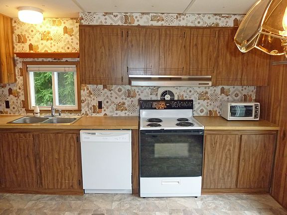 Spacious 1365sf four bedroom, two bath Greentrees home features a large, well lit, master suit with deck access. The main living area features an eat-in kitchen, electric living room fireplace, and hallway utility closet. This property's outdoor space has a two car garage, driveway parking large enough for an RV, raised garden beds, and large greenhouse.