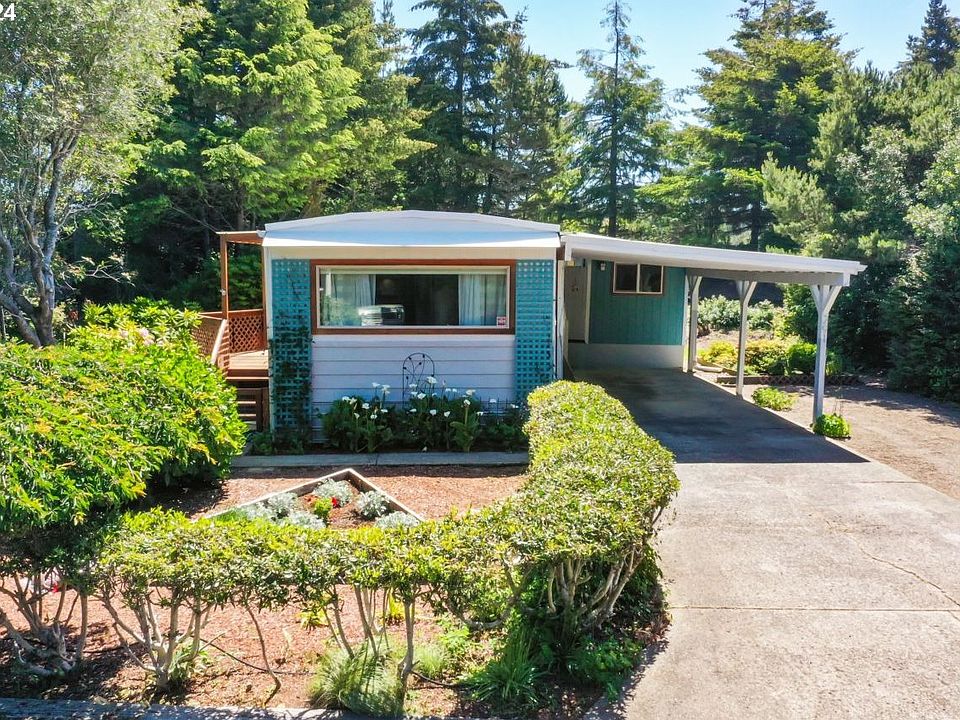 Welcome to your charming, manufactured home nestled in an active 55+ gated community, offering the perfect blend of coastal living and community engagement. Located centrally in the picturesque town of Florence on the stunning Oregon Coast, this property offers a tranquil escape just approximately 2 miles from the pristine beaches.As you step into this thoughtfully updated home, you're greeted by an inviting ambiance enhanced by modern touches and coastal charm. The spacious living area boasts new appliances, offering both functionality and style for effortless entertainment and relaxation. The luxury vinyl plank (LVP) flooring in the main traffic areas adds a touch of elegance while ensuring easy maintenance, perfect for your active lifestyle.Enjoy your coffee outdoors in the covered, wind protected patio regardless of the weather. The covered carport will keep you dry when unloading groceries in inclement weather. Company coming? The large driveway will accommodate extra vehicles safely off the main road. The workshop offers plenty of room for crafts, tools and toys!The property's prime location within the gated community provides security and peace of mind, while also fostering a vibrant social atmosphere among residents. Whether you're enjoying leisurely strolls through the manicured grounds, participating in community events, or simply unwinding on your own private patio, you'll find every day enriched by the sense of belonging and camaraderie.HOA Amenities include Gym, sauna, 2 pools, water, sewer, garbage, cable along with a wonderful clubhouse! With its convenient proximity to the beach, as well as nearby shopping, dining, and recreational amenities, this manufactured home offers the ideal blend of coastal convenience and comfortable living. Don't miss the opportunity to make this charming retreat your own coastal oasis in the heart of Florence.