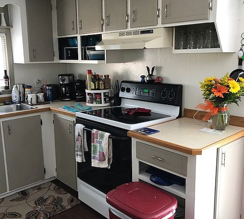 Spacious single-wide, well loved & cared for. New laminate flooring throughout. New light fixtures in kitchen & bathroom. New vinyl double pane windows and membrane roof (approx. 2 years) New vinyl slider off great room (Feb 2017) out to partially covered expansive deck. Gated entry to property makes it extremely private. Paved & planked walkway; makes it wheelchair accessible. Detached dbl garage with sides insulated & new man door.