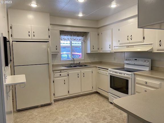 Come enjoy resort style living in the active 55+ community of Greentrees Village where you own your own lot. In the heart of Florence, Greentrees is close to shopping, medical, the beach, river and lakes, and the Oregon Dunes National Recreation Area. The home features two bedrooms and two baths, an open floor plan, covered patio, and fully fenced rear yard. Tandem carport with RV parking and storage/workshop. Additional square footage is attached 12' by 34' sunroom. Washer and dryer included!