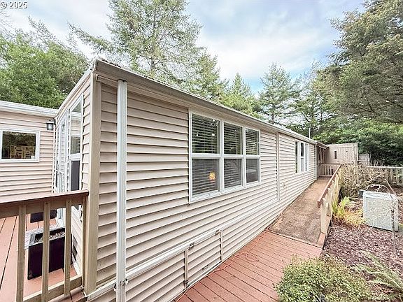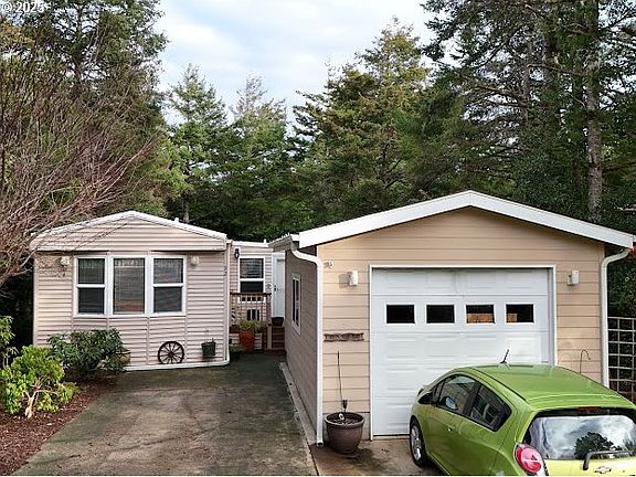 Located in the serene and welcoming 55+ Greentrees Village, this charming 3-bedroom, 2-bath manufactured home offers the perfect blend of comfort and convenience. Situated just a short distance from the ocean, Siuslaw River, and Old Town, you are sure to enjoy the peaceful atmosphere and coastal lifestyle. This home features an open concept living area with an attached sunroom, single-car garage, ramp for easy access, covered patio, tool shed, and raised garden beds ideal for gardening enthusiasts. Greentrees Village offers various amenities, featuring two outdoor pools, sauna/hot tub, tennis court, meeting hall, library, and athletic court fostering a strong sense of community for residents. The $270 monthly HOA fee covers city water/sewer, trash, WIFI internet, cable T.V. and gate/road maintenance. Schedule your showing today and own a little slice of paradise here on the Oregon Coast.
