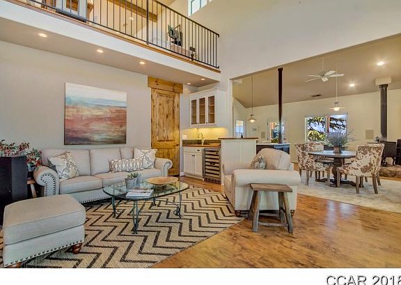 Stunning 25+ acre ranch near downtown Murphys. Home is a converted barn which features 2 bedrooms, 2 baths, open floor plan with loft, gourmet kitchen, 2 wood burning stoves, and vaulted ceilings. Master bath boasts heated floors and steam shower. This beautiful view property has a second building pad complete with 4 bedroom septic system and PG&E meter. Also included are a custom green house, fenced raised planting beds and walking trails. This unique ranch is suited perfectly for vineyards, horses, and large scale entertaining. Property also has a 5000 gallon water tank on site.A truly unique property.