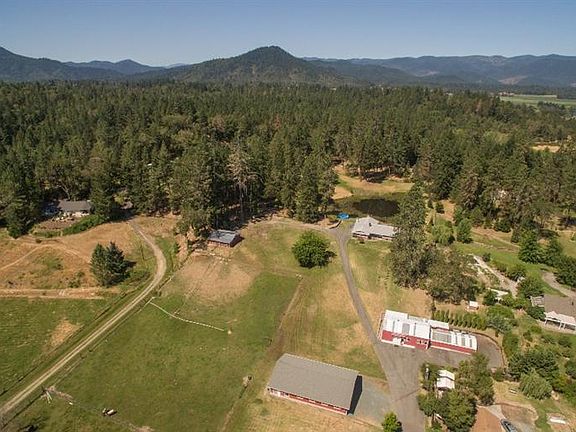 This property is the definition of special! Incredible views; gorgeous year-round pond w/ fish, wildlife & gently sloping grass banks lined w/ mature evergreens; fully irrigated 7.33 acres, fenced & cross-fenced; & not 1 but 2 of the most amazing shops on a residential property found anywhere in S. Oregon! The single level home offers a comfortable floor plan w/ separate living/ family rms & tasteful updates: stainless appliances; new flooring, fixtures, interior paint & more. Expansive decks overlook your private water oasis, the perfect place to relax & enjoy nature. The main shop is 42x70, has heat & A/C, bathrm & plumbed for a kitchen. One could easily convert a small portion to an in-law quarters. The 2nd shop is 48x48 w/ an additional 21x48 enclosed storage area. It's also heated/ cooled w/ a bathrm, kitchenette & office space. Gated entry; tree lined & paved drive; fruit trees; RV hookups; miner's cabin & 15+ gpm well are a few of the extras. There's more; call for details!