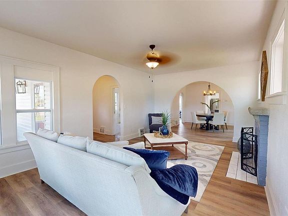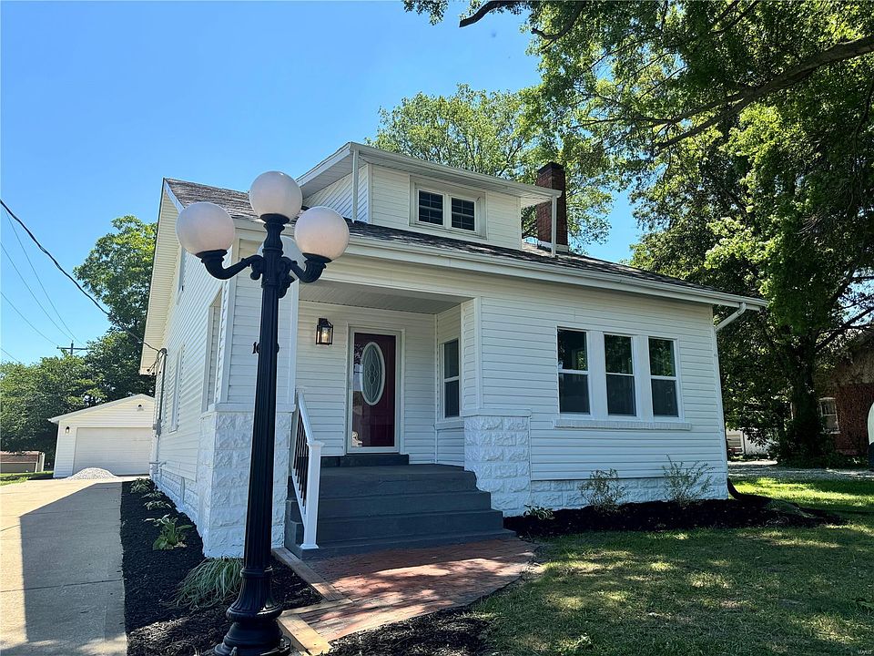 Completely updated bungalow home featuring 4 bedrooms, including a primary suite and 2 full bathrooms. This stunning residence has been renovated from the inside out with new siding, soffit, fascia, and numerous new windows. The interior boasts new flooring and modern light fixtures throughout. The updated kitchen is a chef's dream, equipped with quartz countertops and stainless steel appliances. The master suite offers an en-suite bathroom with a large freestanding soaking tub, a separate shower, and an isolated toilet area. The home includes a spacious living room with a fireplace, a large dining room, a full basement, and an upstairs loft perfect for an office or additional living space. Enjoy the covered front porch, a large driveway for ample parking, and a 2-car detached garage. With so many new features, you have to see this house to believe it. All information is deemed reliable but not guaranteed; independent verification is recommended.