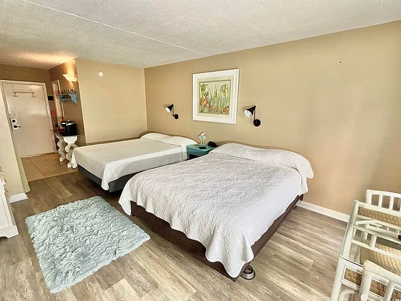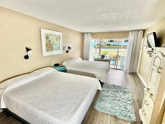 PRICE IMPROVEMENT! Owner financing is available. Coastal Convenience Just a Street from the Ocean! This WONDERFUL first-floor efficiency unit offers unbeatable beachside living—no stairs to climb, making access a breeze! Fully furnished and move-in ready, this open-concept condo features tiled floors throughout, a private balcony to enjoy the ocean breeze, and all the essentials for a relaxing getaway or rental opportunity.  Located in a well-maintained resort, you’ll enjoy amenities including: a pool, lazy river, kiddie pool, and on-site laundry facilities.  The HOA fee covers EVERYTHING—electric, water/sewer, trash, pool and lawn care, building insurance, on-site management, security, cable TV, internet, and pest control—making this a hassle-free investment or vacation escape.