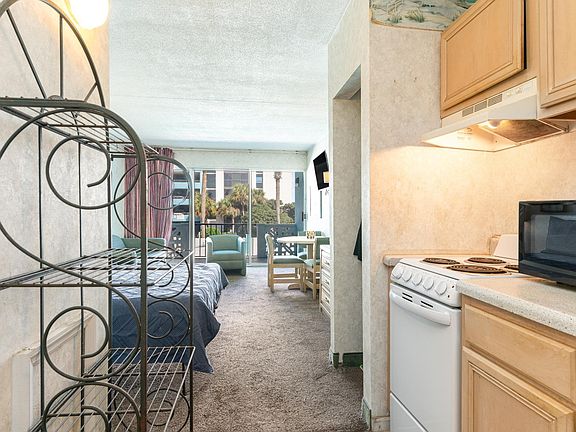 Welcome to this fully furnished efficiency unit at the Wave Rider Resort in Myrtle Beach! Perfectly situated just one row back from the beach, the unit offers  the ideal getaway for those seeking both relaxation and adventure. Inside the unit, you will find a fully equipped kitchen with a stove, oven, microwave , and  a full sized refrigerator; making it the ideal spot for preparing meals while on vacation. The living/dining area offers a spacious and inviting atmosphere, featuring a queen sized bed and dining room table. The HVAC system inside the unit was also recently updated in 2021. Step outside onto your private balcony, where you can experience the views of the resort pool. The Wave Rider Resort offers a variety of amenities to keep you entertained including outdoor pools, shuffle board, and onsite laundry. The resort is also conveniently located near some of the Myrtle Beach area's finest dining, shopping, golf, and entertainment options. This unit would make a great vacation spot or investment property. Don't wait, schedule your showing today!
