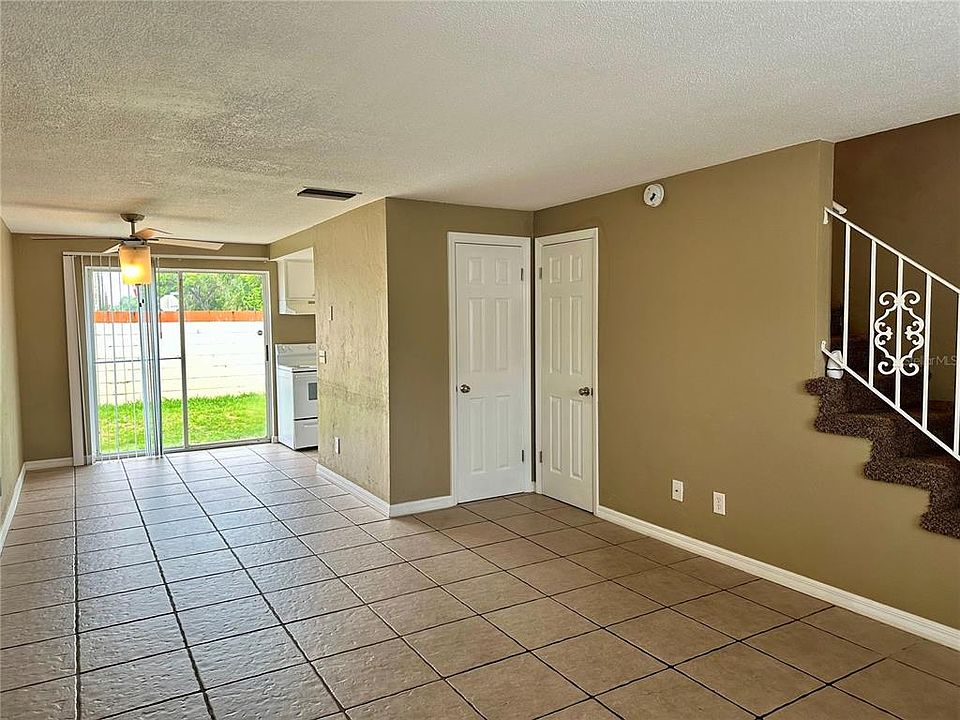 Beautiful Townhome 2 bedrooms, 1 bathrooms. Ceramic Tile downstairs. New vinyl flooring upstairs. The well-appointed kitchen is a chef's delight, boasting newer appliances that make cooking a joy. The adjacent dining room opens up to a nice patio deck, perfect for al fresco dining or simply enjoying the Florida sunshine and fresh air. Upstairs, you'll find both bedrooms adorned with warm wood laminate flooring and enhanced by the gentle circulation of ceiling fans. The layout provides privacy and functionality, with a full bathroom serving both bedrooms. The location of River-Golf Townhouses adds an extra layer of appeal. Situated just two blocks from the river, residents can enjoy serene strolls along the waterfront. Plus, with the beach a mere 5-minute drive away, you'll have the luxury of coastal living at your fingertips. Don't miss this opportunity Schedule a showing today